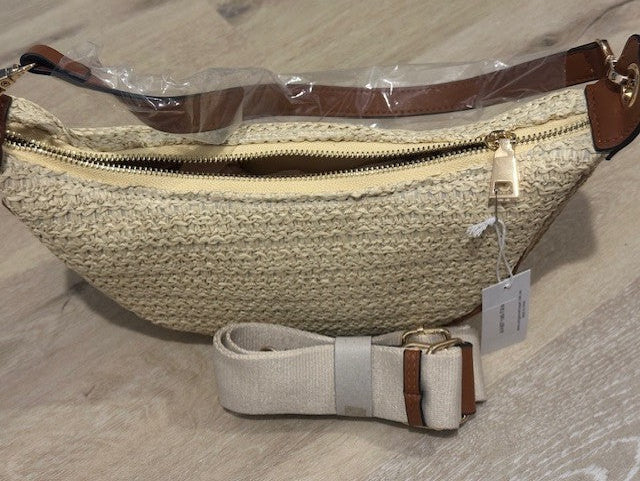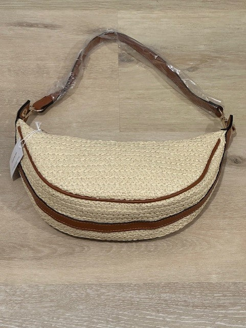 Cute little Straw bag with Faux leather accents. Gold hardware and an additional crossbody strap. Perfect day to night summer bag.