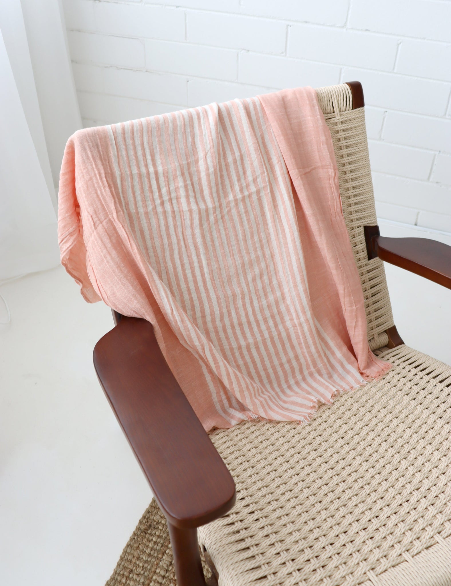 Stay stylish and comfortable with our Pink Stripe Cotton Sarong Scarf. Made of soft textured cotton, this scarf is perfect for any season, adding a touch of sophistication to any outfit. Stay effortlessly chic and cozy with this lightweight and versatile accessory.