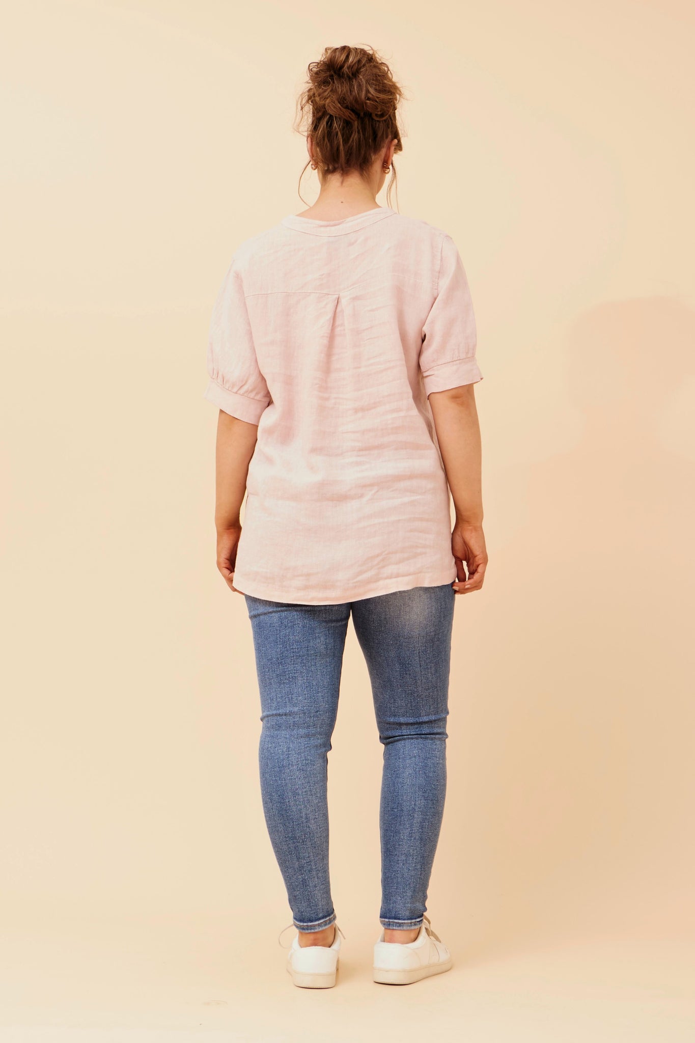 Pink 3/4 sleeve shirt. V-neck. Italian Made.